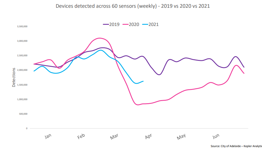 Figure 1: Visitors detected, early 2019, 2020 and 2021