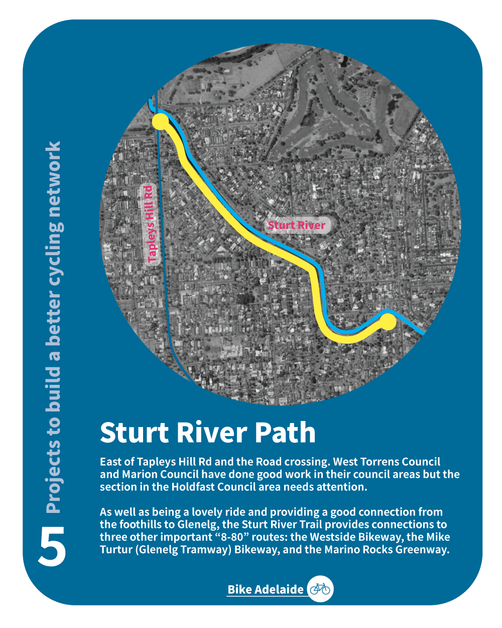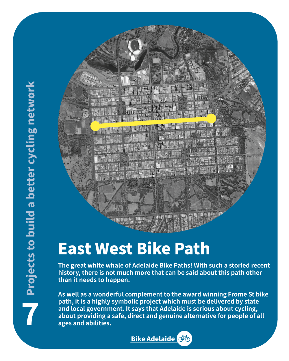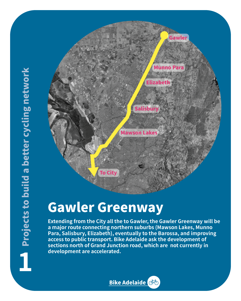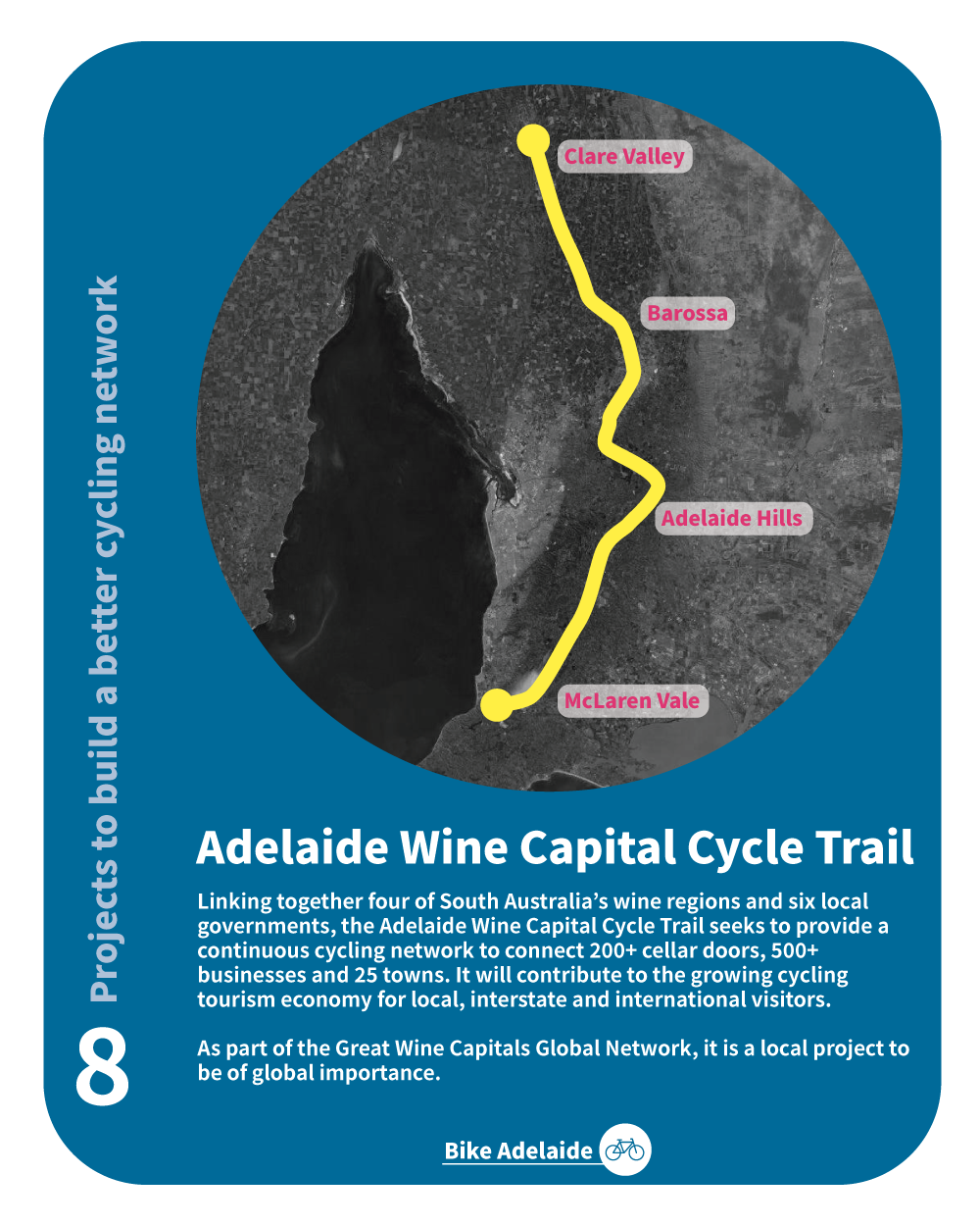 Bike Adelaide have identified a number of projects of major significance that can contribute to a stronger and better connected cycling network throughout Adelaide.
